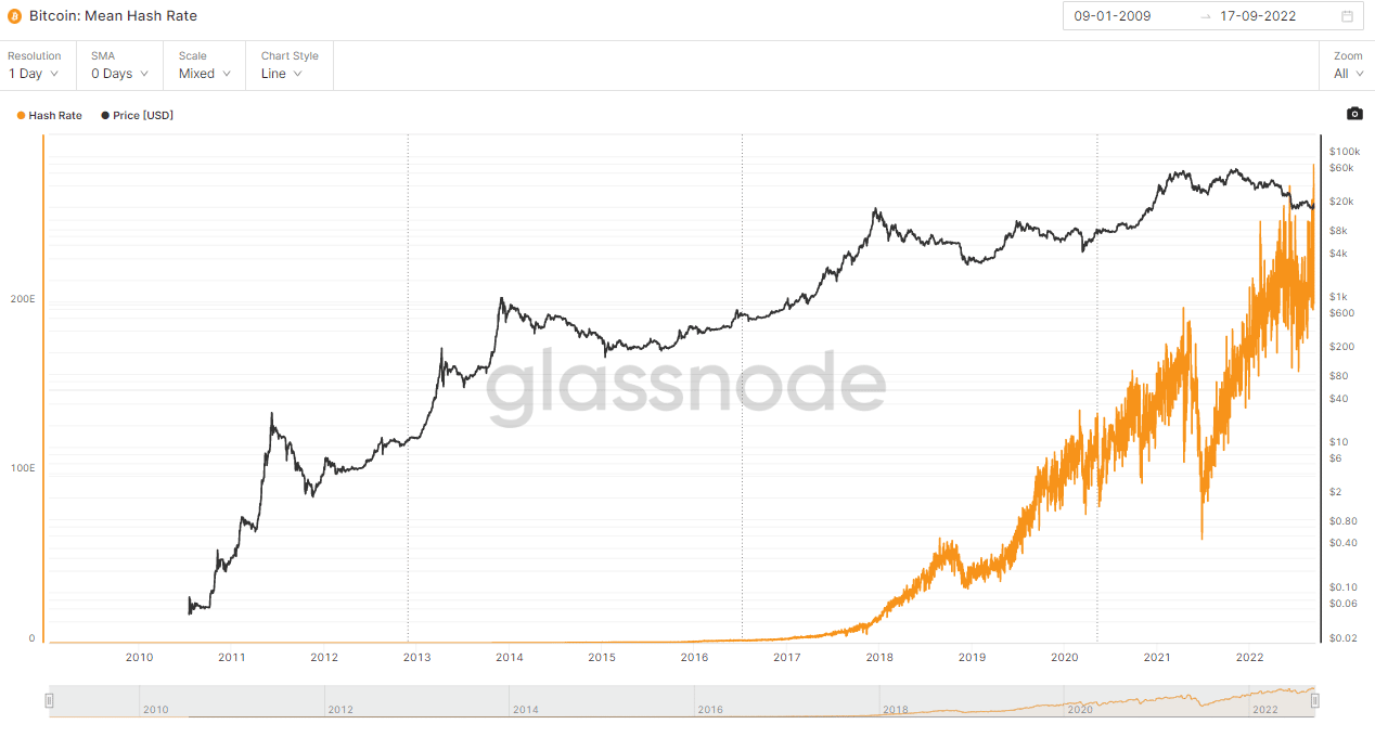 Hash rate sa často používa ako miera zdravia siete kryptomien na báze Proof of work. Nárast v čase môže tiež poukazovať na rastúci záujem o ťažbu, pravdepodobne v dôsledku lacnej réžie a vyšších ziskov. Naopak, pokles hash ratu poukazuje na to, že baníci odchádzajú do režimu offline (kapitulácia baníkov), keďže už pre nich nie je výhodné zabezpečovať sieť.