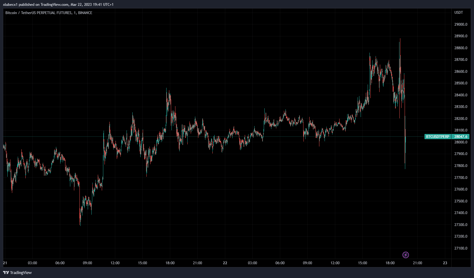 Globálne trhy začali na rozhodnutie centrálnej banky reagovať po malom raste aktuálne masívnym výpredajom. Bitcoin počas jednej minúty stratil až 1 000 dolárov. Čo je jeden z najväčších nárazových poklesov za posledné mesiace. Klesá aj najväčší akciový index S&P500.