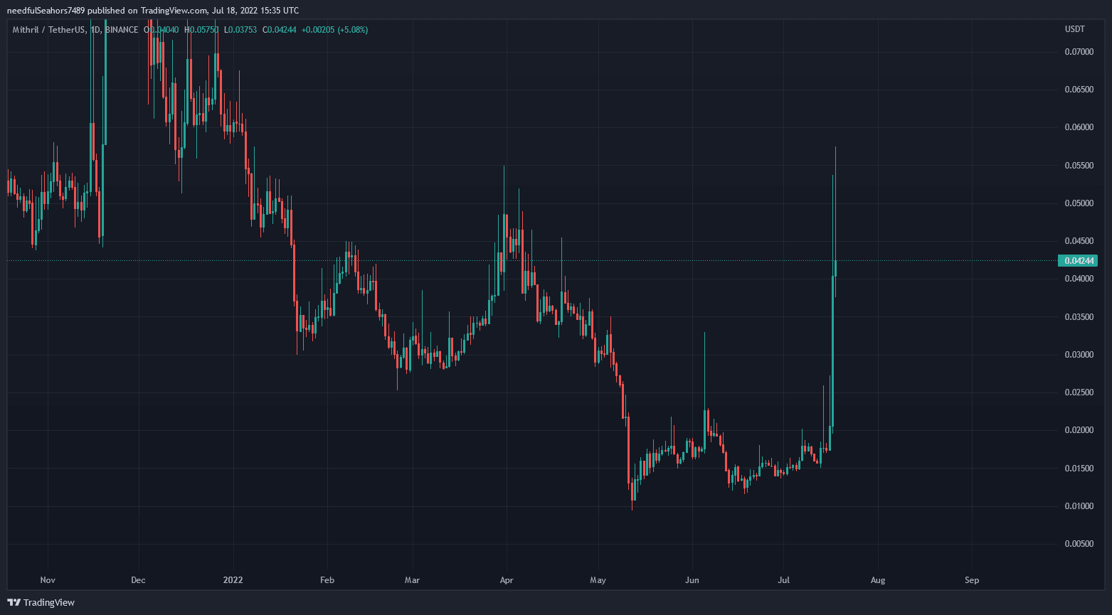 Trh s kryptomenami zažíva posledné dva dni malé oživenie. Bitcoin sa v čas písania článku obchoduje za 22 211 dolárov a niektoré altcoiny vykazujú slušné zisky. Medzi nimi sa našla jedna kryptomena, ktorá urobila parabolický zisk – vyše 228 % za necelé dva dni. Reč je o projekte Mithril (MITH).