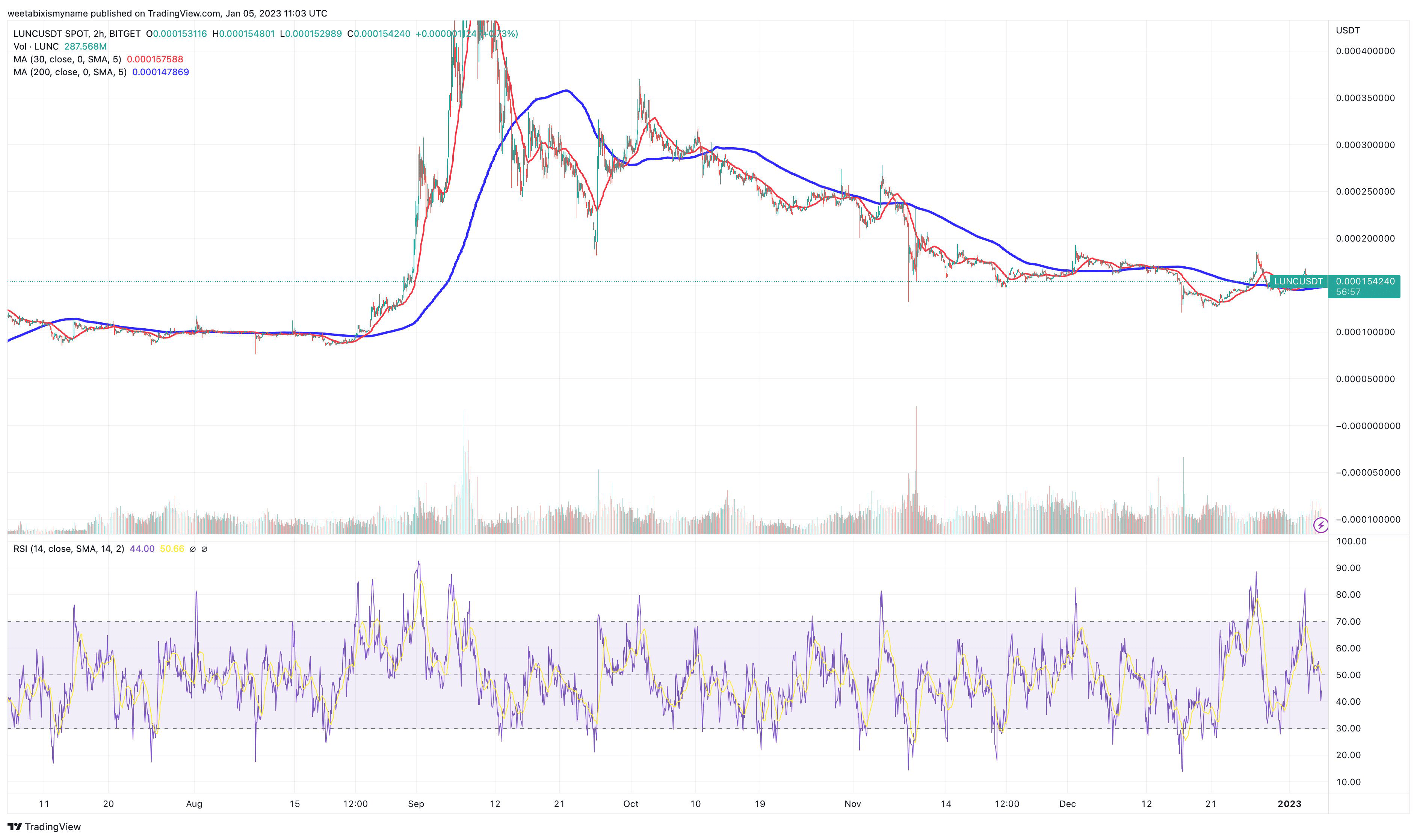 Podľa Chandlera spaľovanie tokenov LUNC, ktoré začalo ako výsledok masívnej algoritmickej tvorby nových tokenov LUNA po poklese stablecoinu UST, môže postupne viesť k rastu tokenu LUNC. LUNC môže na základe RSI ešte klesať, no zároveň sa vytvára priestor aj pre budúci rast.