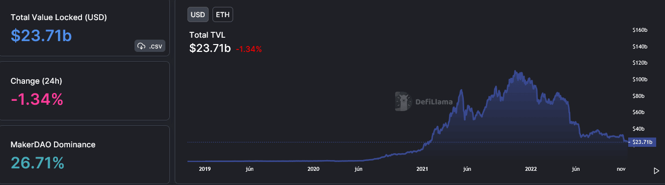 Ethereum TVL. Zdroj: Defi Lama