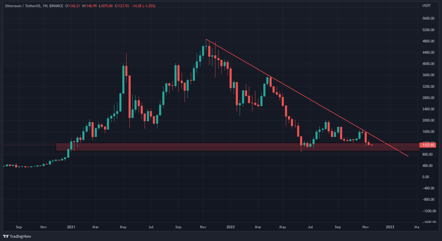Dňa 22. novembra Ethereum vstúpilo do pásma veľkej predajnosti (tzv. Fire sale), kde sa ocitlo naposledy v marci 2020. Vtedy sa, paradoxne, Ethereum obchodovalo za 100 dolárov, čo naznačuje, ako veľmi sa cena kryptomeny od poklesu na túto hodnotu zhodnotila. V minulosti pri poklese do tohto pásma Ethereum zažilo parabolický rast a prinieslo investorom veľké zisky. To pri dnešnej situácii z makroekonomického hľadiska síce nie je pravdepodobné, ale pre investorov je to signál, že druhá najväčšia kryptomena je dnes už skutočne lacná.