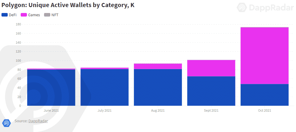 Najväčší nárast sietí, ktoré ponúkajú hry, patrí jednoznačne blockchainu Polygon. Táto sieť dokázala zvýšiť počet aktívnych peňaženiek, ktoré sú pripojené ku hrám, až o 242 %.