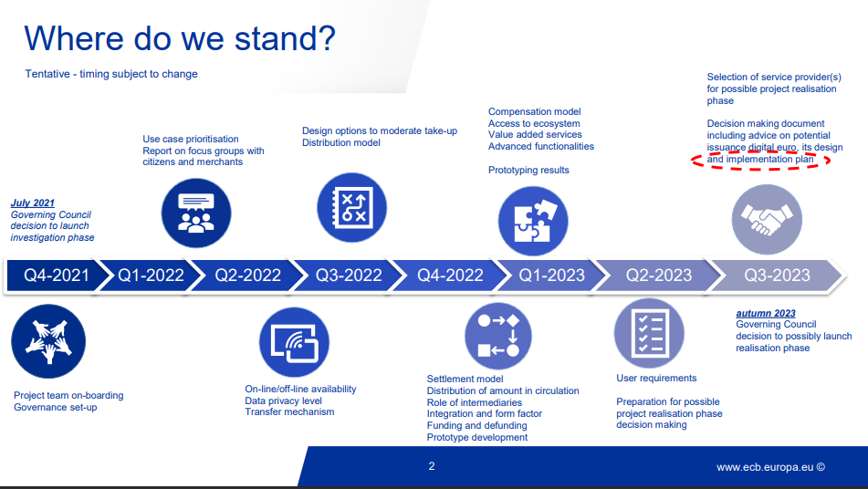 Proces zavádzania digitálneho eura. Zdroj: ECB