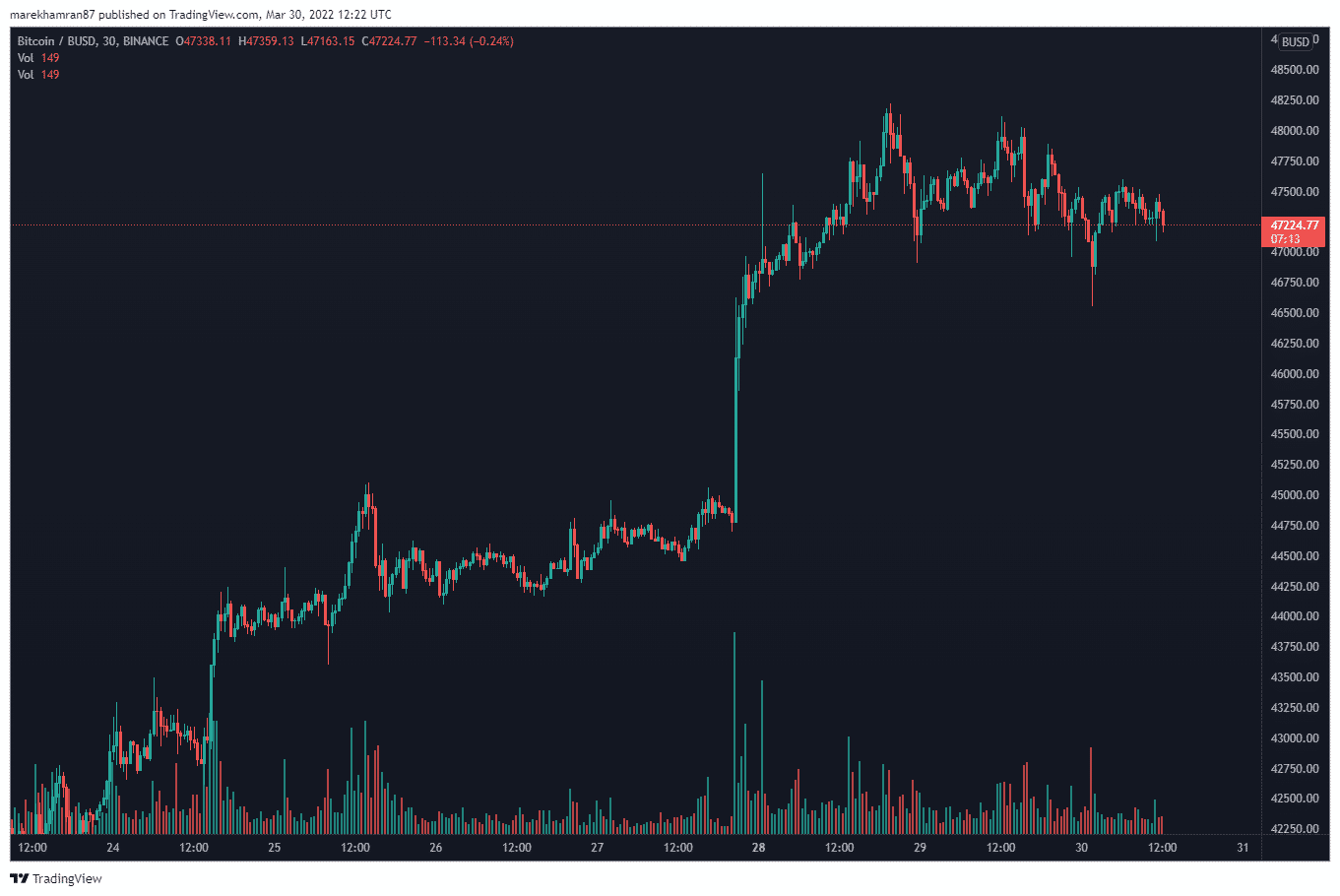 Naposledy, keď sa tento populárny index dostal na hodnoty chamtivosti, Bitcoin vystrelil na nové historické maximum 69 000 USD. Aktuálne sme svedkami veľkého rastu celého trhu s kryptomenami. Celková trhová kapitalizácia sa za posledných 24 hodín zvýšila o 5,4 % na približne 2,26 bilióna USD. Pre Bitcoin je aktuálne extrémne dôležité, aby dosiahol a následne udržal cenu 48 000 USD. V tomto prípade je možný nárast až na nové ATH.