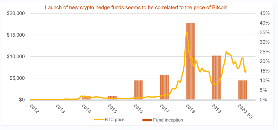 „Náš výskum za Q1 2020 ukazuje, že existuje okolo 150 aktívnych krypto hedžových fondov. Takmer dve tretiny z nich (63 %) boli uvedené na trh v rokoch 2018 alebo 2019. Odhadujeme, že celková hodnota krypto hedžových fondov sa globálne zvýšila približne o jednu miliardu. Zatiaľ čo v roku 2019bolo na trhu približne 900 miliónov, momentálne je to viac ako 2 miliardy. Ide o dvojnásobný nárast.”