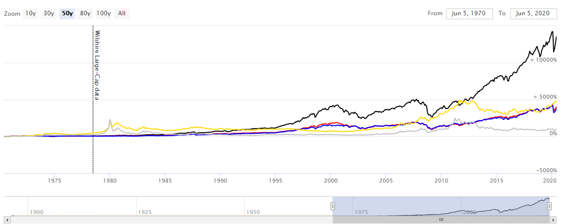 Na obrázkoch teda jednoznačne vidieť, že z dlhodobého hľadiska je výnosnosť indexov a zlata porovnateľná, pričom zaostáva striebro. Okrem iného vidieť aj prudkú volatilitu v dvoch prípadoch na trhu komodít v porovnaní s indexmi. Na základe historických grafov teda môžeme vydedukovať, že výnosnosť zlata a indexov je veľmi podobná, no zlato poskytuje prudšie výkyvy v rámci cyklov. Z tohto hľadiska sú indexy menej rizikové, avšak zlato môže v bull runoch priniesť rýchlejšie peniaze.