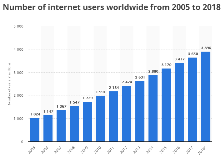 A k tomu tu máme ďalšiu dôležitú štatistiku, ktorá ukazuje rast počtu používateľov internetu, ktorý sa chystá preraziť 4 miliardy ľudí. Z celkového počtu používateľov internetu sa tak dostaneme približne na +/- 1 % tých, ktorí vlastnia kryptomeny.