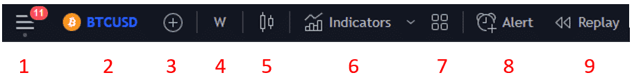 Prvou sekciou je predovšetkým základné nastavenie grafu, čo znamená, že každý, kto ide analyzovať graf, by mal najprv nastavovať možnosti v tejto časti. V každej sekcii si budeme vysvetľovať všetky tlačidlá a možnosti, ktoré ponúka platforma TradingView.