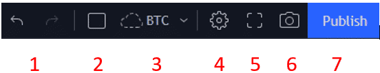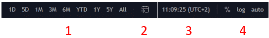 V tejto sekcii sa nachádza rozšírené nastavenie grafu pod horizontálnou osou. Teraz si vysvetlíme, čo znamenajú jednotlivé časti v tomto paneli nástrojov podľa číselného poradia na obrázku nižšie.