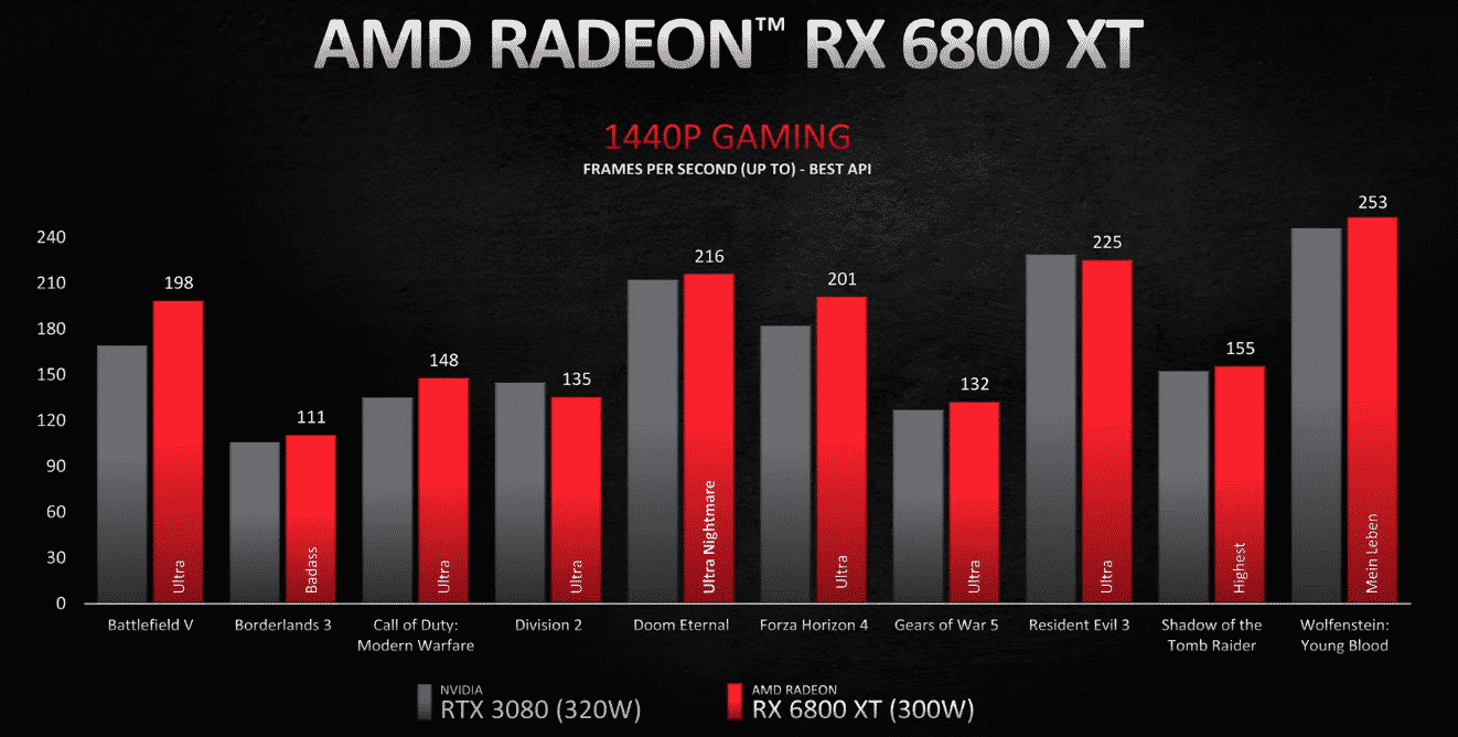 Toto GPU priamo konkuruje Nvidia RTX 3070 a jemne ju prekonáva cenou 579 $ (vs 499 $) a výkonom. Spoločnosť AMD samozrejme presne nevedela, aký výkon poskytne GPU ich konkurencie, a tak svoju kartu porovnali voči 1200 $ 2080 Ti. Ako sme však písali dnes v článku, nezávislé recenzie potvrdili, že výkon 3070 a 2080 Ti je viac menej rovnaký.
