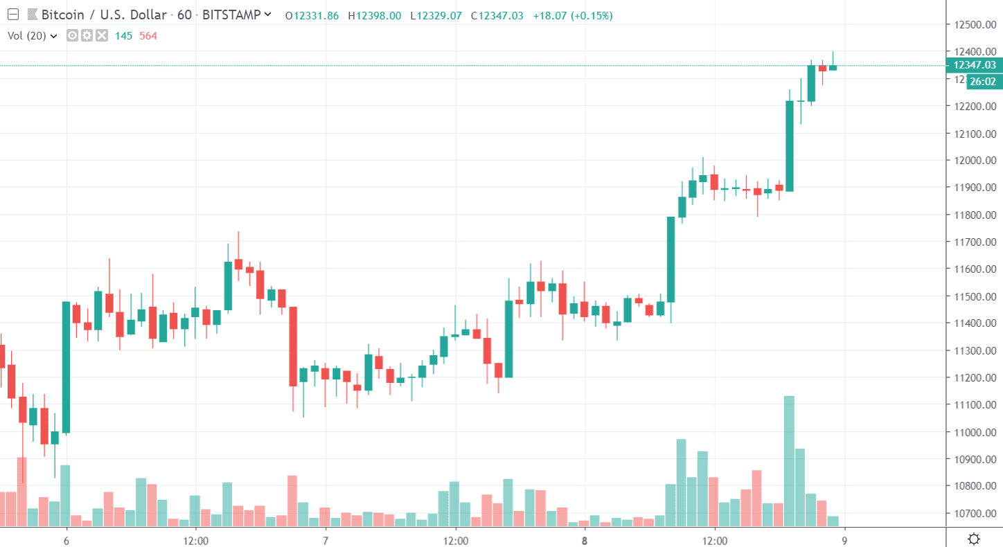 Bitcoin začal v pondelok relatívne rýchlo rásť. Najprv ráno poskočil z 11 300 $ na 11 700 $ a neskôr večer pridal ešte jednu menšiu pumpičku. Momentálne (krátko po polnoci) sa na burze Bitstamp obchoduje za 12 400 $ a testuje kľúčovú rezistenciu.