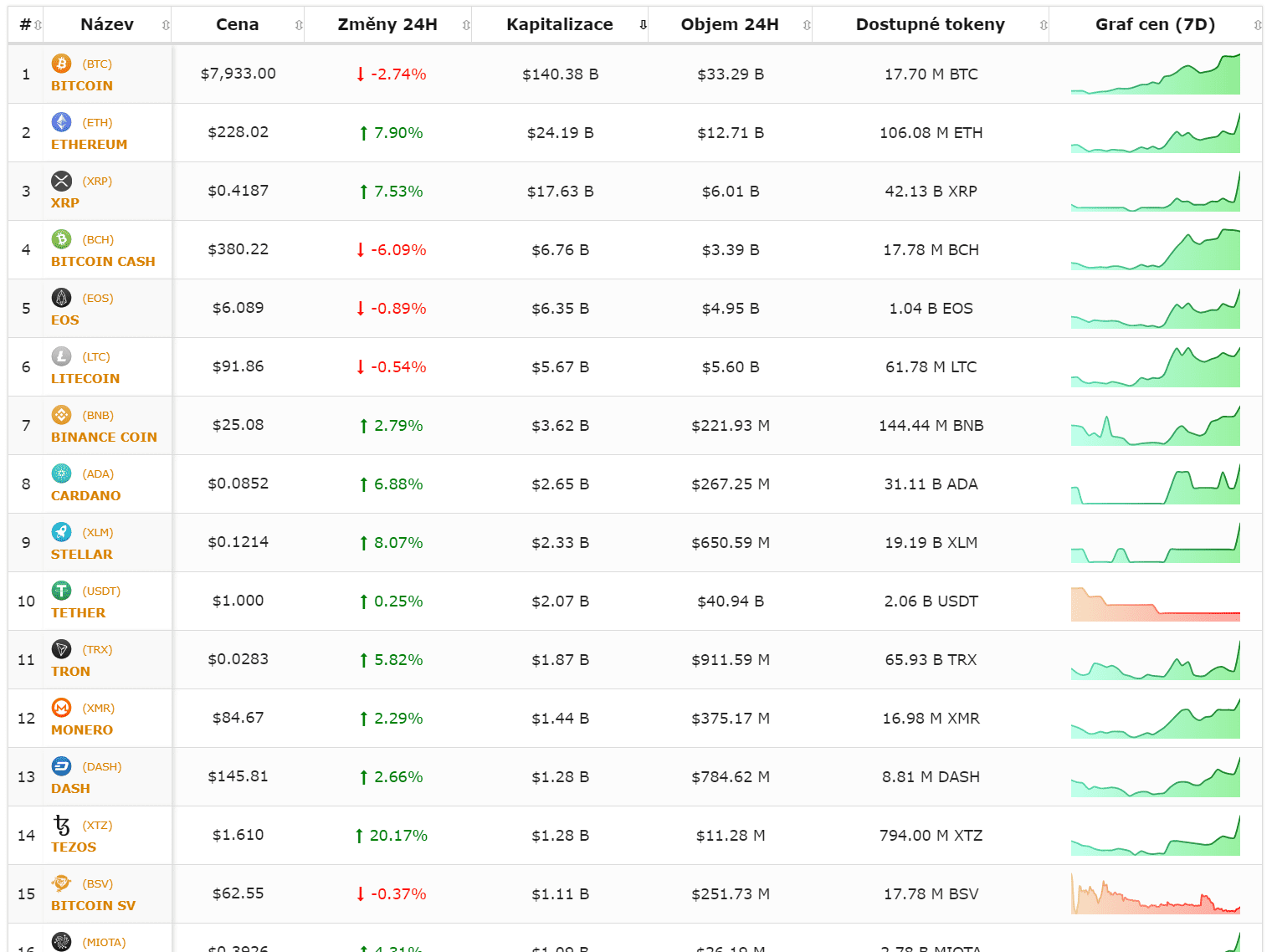 Zaujímavo vyzerá hlavne Ethereum (+8%), XRP (+7,5%), Cardano (+7%), Stellar (+8%), TRON (+6%) a Tezos (+20%).