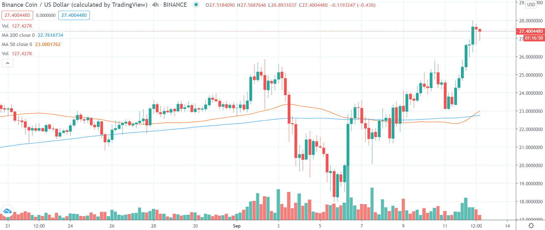 Polkadot však nie je jediný altcoin, ktorý dnes spravil dvojciferný zisk. Potešil aj Binance Coin, ktorý preskočil Litecoin a po 13% raste je na ôsmom mieste v kapitalizácii. BNB je natívnym coinom burzy Binance a má niekoľko využití. Traderi ho držia, aby si znížili poplatky za obchodovanie a investuje sa s ním do IEOs. Šéf Binance Changpeng Zhao nedávno oznámil, že sa chystá nová vlna IEOs takže očakávame zvýšený záujem o BNB.