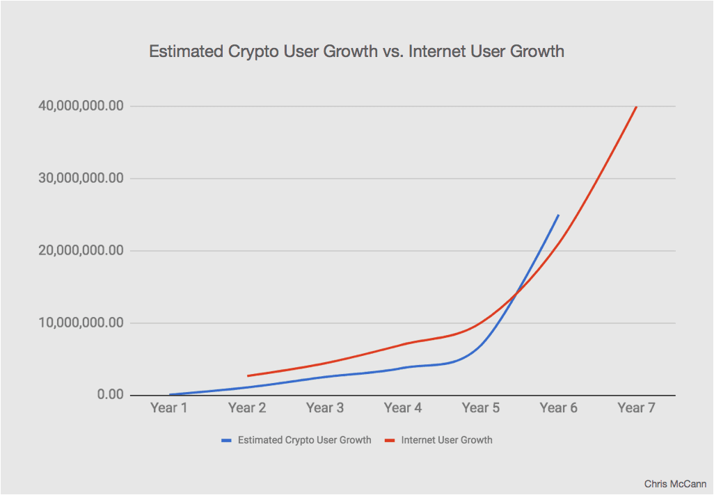 Nárast používateľov kryptomien vs. nárast používateľov internetu