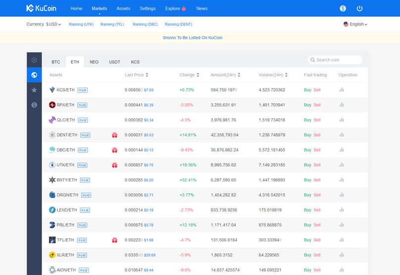 Čínsky multiexchange Kucoin disponuje veľmi pestrým výberom altcoinov, ktorý sa každým dňom rozširuje o nové, a pármi voči Bitcoinu, Ethereu, NEO, USDT, Kucoin Shares a Bitcoin Cash, čo je ponuka, ktorá sa len tak nenájde.