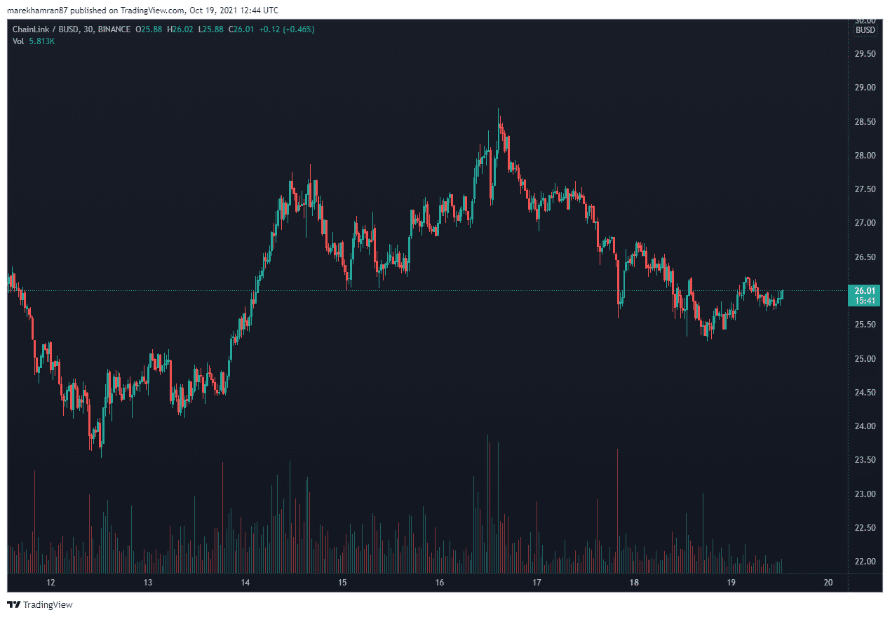 Údaje o tomto projekte priniesol populárny portál Santiment, ktorý na svojom twitterovom účte zverejnil príspevok o zvýšenom záujme veľrýb o tento projekt. Za posledné mesiace pridali do svojho portfólia viac ako 15 % z celkovej ponuky ChainLinku. 17. najväčšia kryptomena z hľadiska trhovej kapitalizácie sa v čase písania tohto článku obchodovala na úrovni 25,94 USD. Veľkí hráči však využili nedávny pokles, pri ktorom zrealizovali ďalšie nákupy.