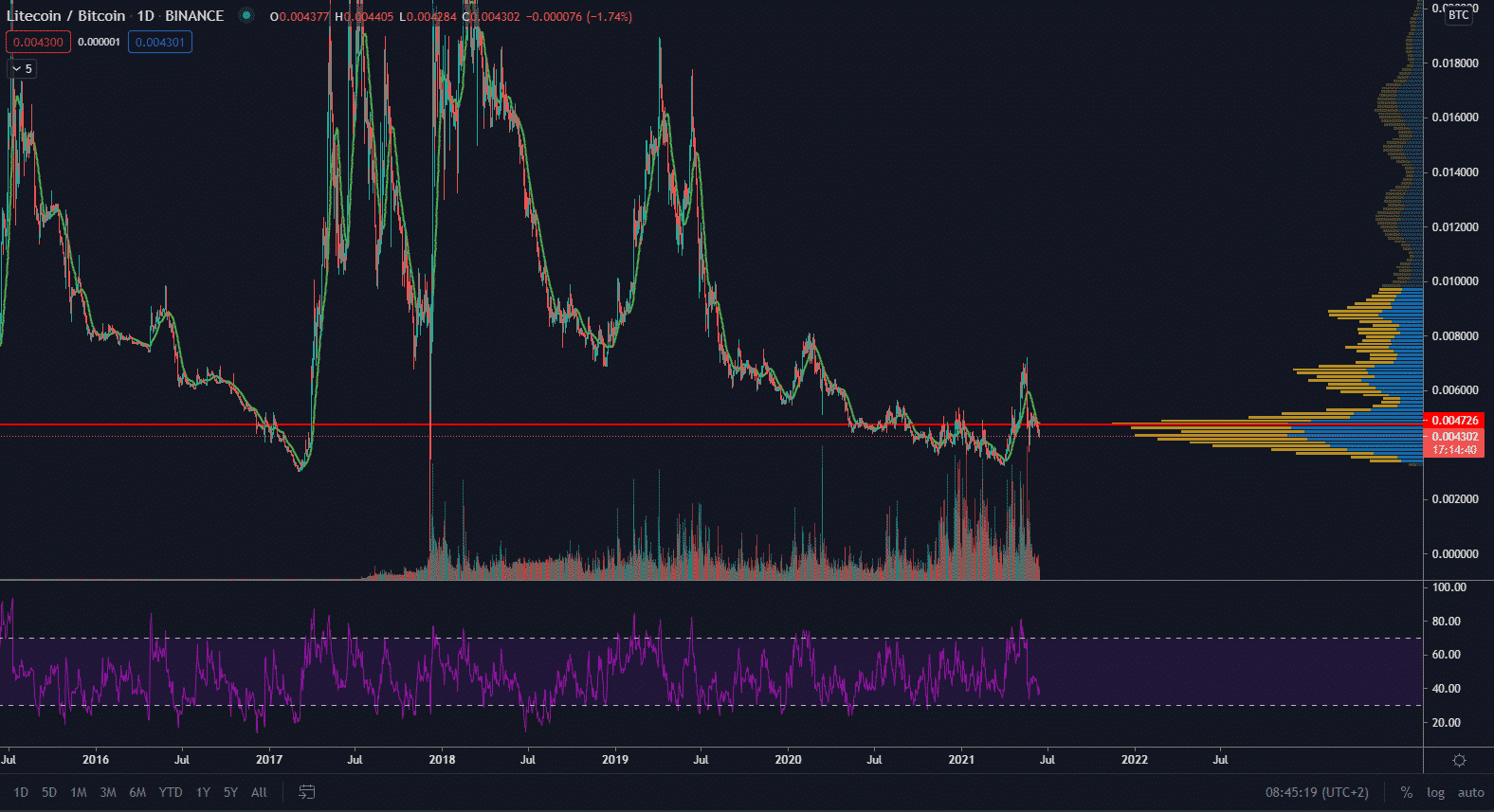 Graf LTC / BTC ukazuje dlhoročnú nedostatočnú výkonnosť. Každý Bitcoin je viac ako 200-krát cennejší ako každý Litecoin. Jeho ponuka je však iba štyrikrát väčšia. Matematika sa teda nezhoduje a keď si to trh konečne uvedomí, môže to byť pre LTC silné zotavenie.