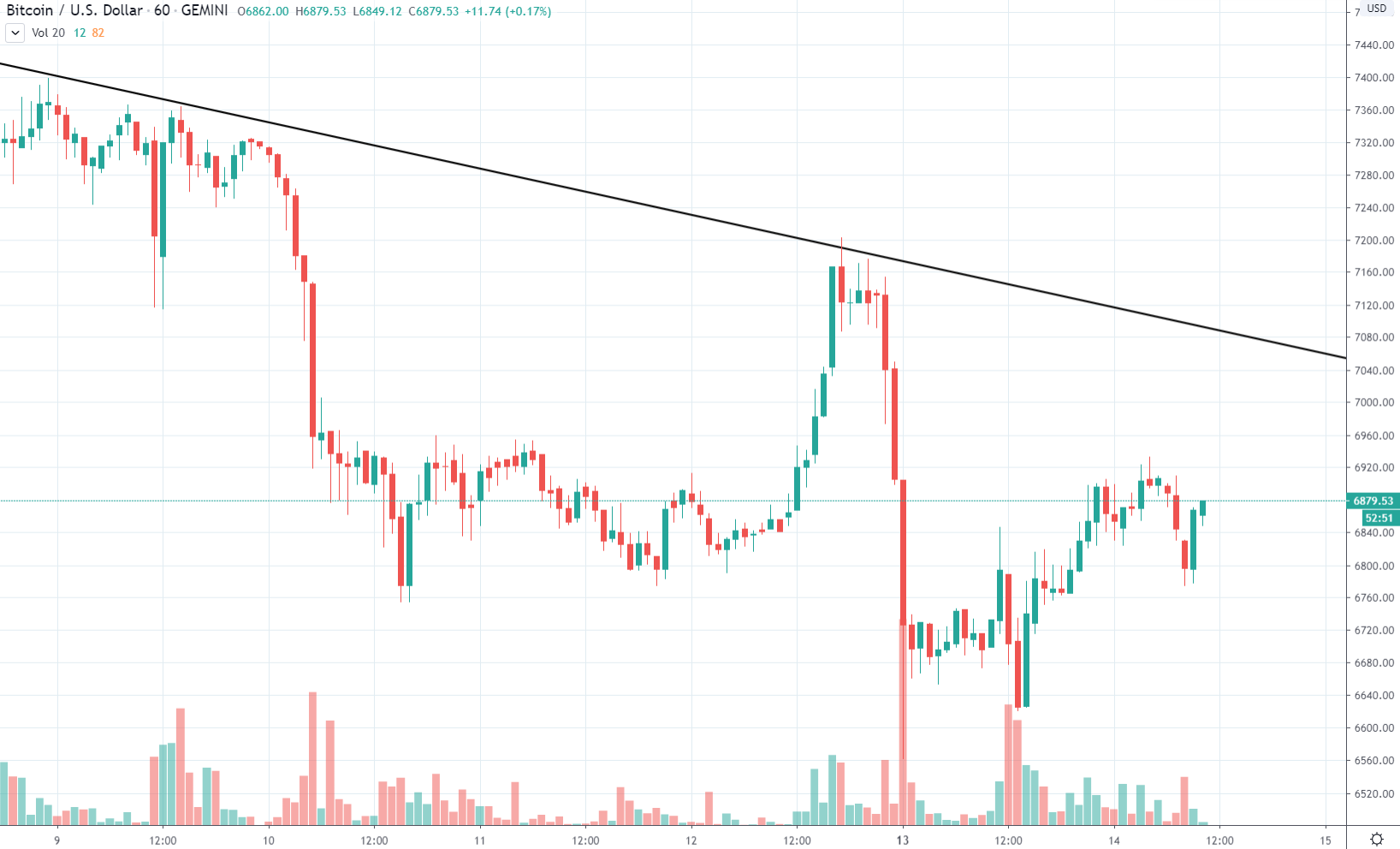 Aj túto nedeľu sme boli svedkami veľkého boja býkov s medveďmi. Bitcoin sa celý víkend pohyboval v intervale 6750 – 6950 $ kde padol z 7+ tisícových hodnôt už v piatok ráno.