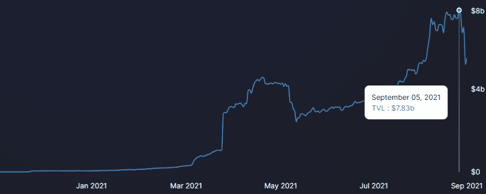 Rýchly rast taktiež zvýšil celkovú uzamknutú hodnotu (TVL) na protokole Terra na nové historické maximum 7,83 miliardy dolárov 5. septembra. Tým sa Terra stala podľa Defi Llama štvrtou platformou blockchainu podľa TVL.