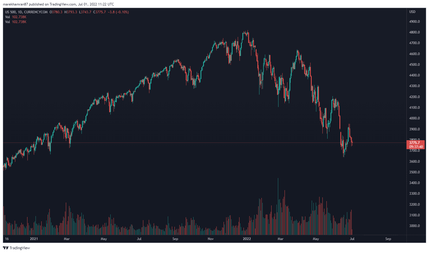 Stav globálnej ekonomiky sa zhoršil do tej miery, že pripomína podmienky roku 1970. Centrálne banky na čele s Fedom podcenili situáciu v prípade inflácie pochybili. Index S&P 500 zažil pokles o 20 %, čím spustil lavínu poklesov na trhu s rizikovými aktívami. Na tejto vlne sa zviezol aj trh s kryptomenami a komoditami.
