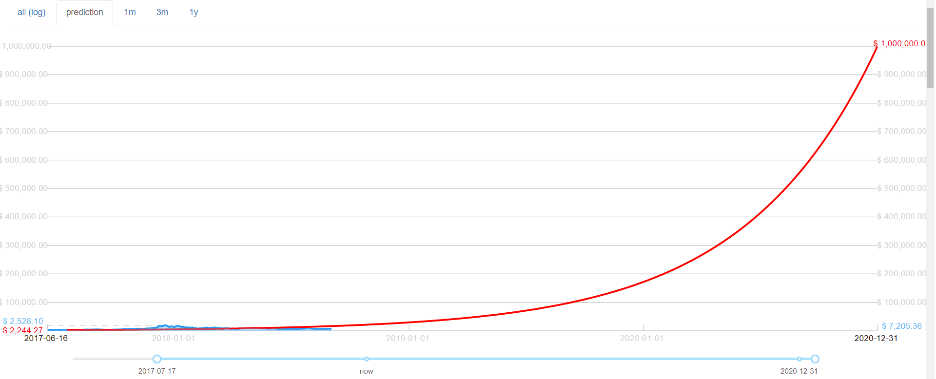 Táto pamätná stávka „s diablom“ mu priniesla veľa slávy. Po čase dokonca zverejnil model, podľa ktorého vytvoril svoju predikciu. Ide o relatívne jednoduchú exponenciálnu krivku, ktorá začína 17.7.2017 na hodnote 2244 $. Pozrieť si ju, prípadne s ňou experimentovať, môžete po kliknutí na tento odkaz.