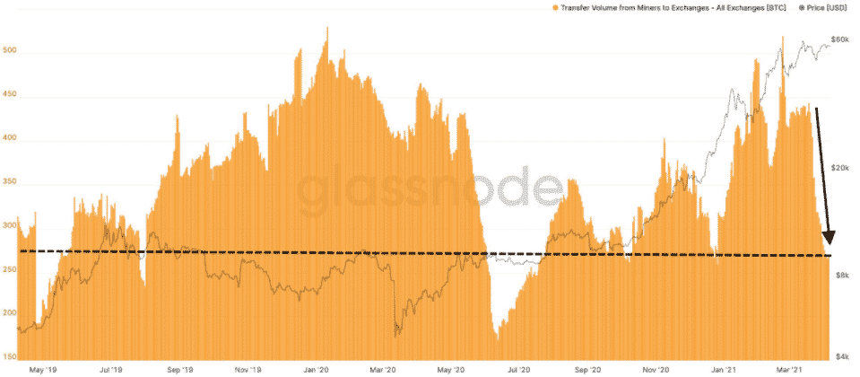 Údaje od poskytovateľa analytiky on-chain Glassnode ukazujú, že minerské zostatky Bitcoinov sa zvyšovali od konca marca. Po výrazných odlevoch v priebehu januára sa neustále znižoval predaj minerov vo februári a začiatkom marca.