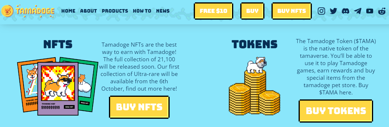 Tamadoge má už teraz dostupné svoje NFT kolekcie a tokeny, ktoré si môžete zakúpiť. Budete môcť kupovať alebo predávať svoje domáce zvieratá NFT, bojovať s nimi alebo chovať nové.