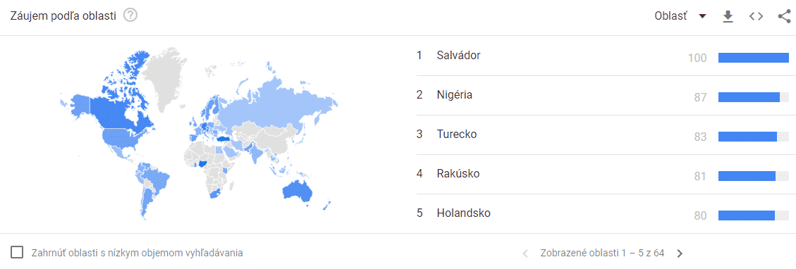 Tu je niekoľko ďalších zaujímavých údajov: tentoraz popularita filtrovaná podľa regiónov, nie podľa času: