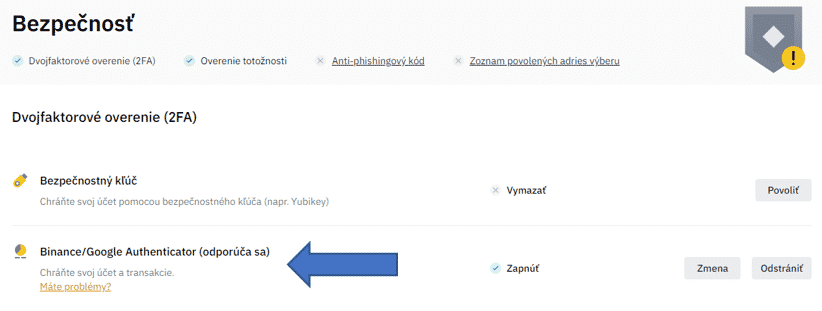 2FA Binance. Zdroj: Binance