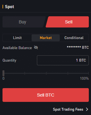 V minulosti ste nakupovali BTC za cenu 28 500 $. Odvtedy cena narástla na hladinu 30 000 $. Chcete sa ochrániť pred potenciálnymi stratami, a preto zadáte conditional príkaz na limitný predaj s parametrami trigger price 28 900 $ a limit price 28 500 $. To znamená, že ak cena dosiahne hodnotu 28 900 $, tak sa vám vytvorí limitný príkaz na predaj za cenu 28 500 $ (cena pri vašom prvom nákupe). Predáte tak minimálne za cenu, za ktorú ste prvýkrát nakúpili a nebudete tak stratový. Jediné, čo potrebujete urobiť, je vyplniť množstvo, ktoré chcete obchodovať. V tomto konkrétnom príklade sme zadali 1 BTC.