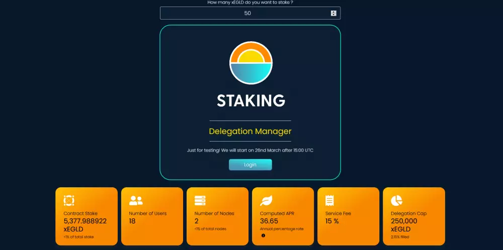 Následne kliknete login. Aktuálne sa dá prihlásiť len pomocou Elrond Wallet, avšak čoskoro pribudne aj možnosť priamo z Maiaru (27. marca). Následne už si len vyberiete aké množstvo chcete stakovať a hotovo, už nemusíte robiť nič.