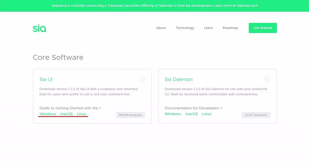 Krok 1: Prejdite na stránku aplikácie Sia (presmerovanie tu). Na stránke vyberte svoj operačný systém, po kliknutí na jeden z troch systémov sa spustí sťahovanie.