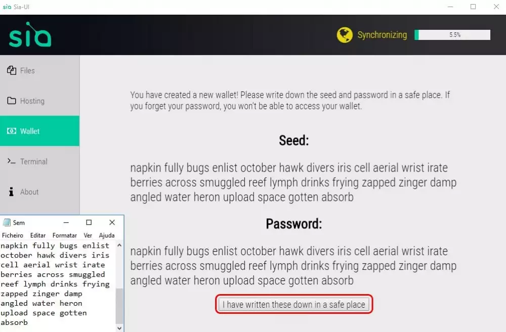 Ako sme povedali na začiatku tohto návodu, je to najbezpečnejšia peňaženka Sia. Preto nezabudnite uložiť svoje heslá a užívať si novú peňaženku. A do budúcna sa pozrieme aj na ťažbu tohto coinu.