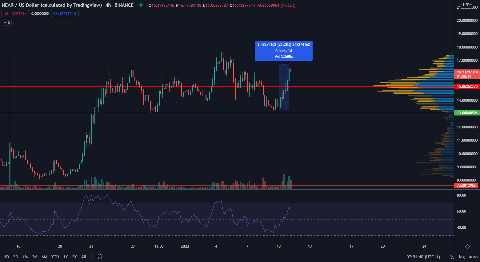 NEAR sa od posledného minima odrazil pomerne slušne a dosiahol zisk zhruba 27 % iba za jediný deň. Napriek tomu je tento odraz stále v sideway štruktúre, ktorá trvá od Vianoc. Objemy v tejto štruktúre však hovoria jasne v prospech býkov a trhová cena sa obchoduje tesne pod historickým ATH, na rozdiel od zvyšku trhu.