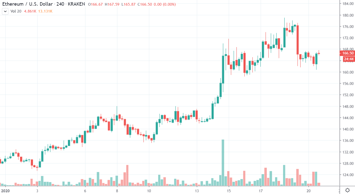 Momentálne sa Ethereum obchoduje za 165 $ a má to dobre namierené k silnému supportu na cene 180 $. Rok 2020 bol zatiaľ pre altcoiny prívetivý. Niektoré už stihli vyrásť aj o stovky percent.