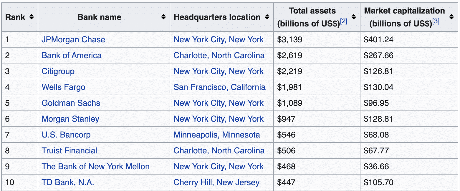 TOP 10 najväčších amerických bánk