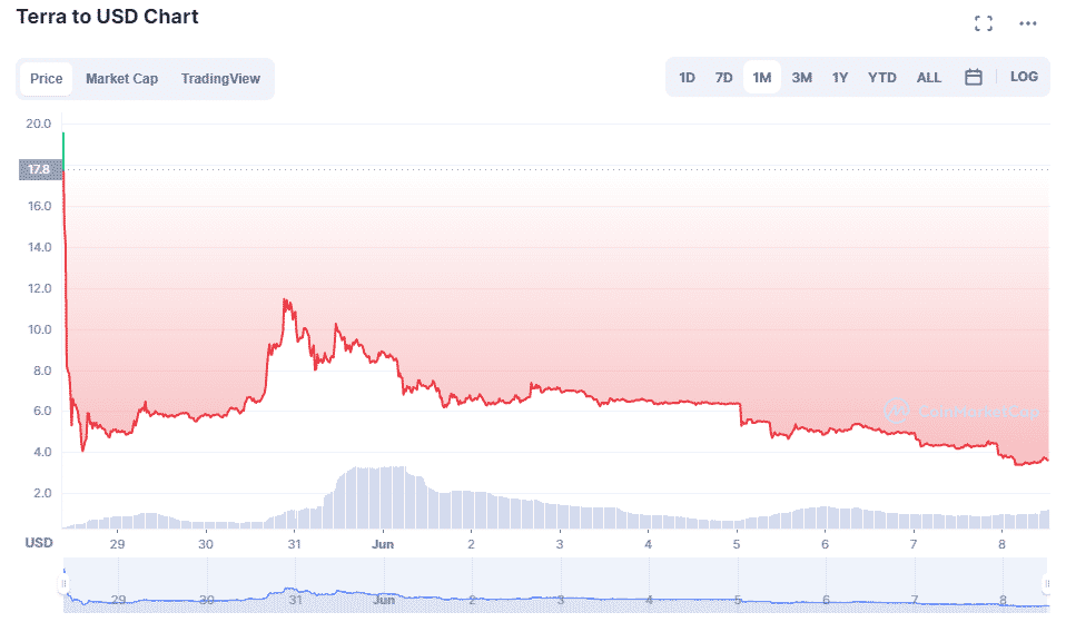 Cena najnovšieho počinu Do Kwona – token LUNA, sa aktuálne obchoduje na novom historickom minime, a to konkrétne na 3,67 USD. Za posledných 24 hodín evidujeme podľa portálu CoinMarketCap prepad až o viac ako 14 %.