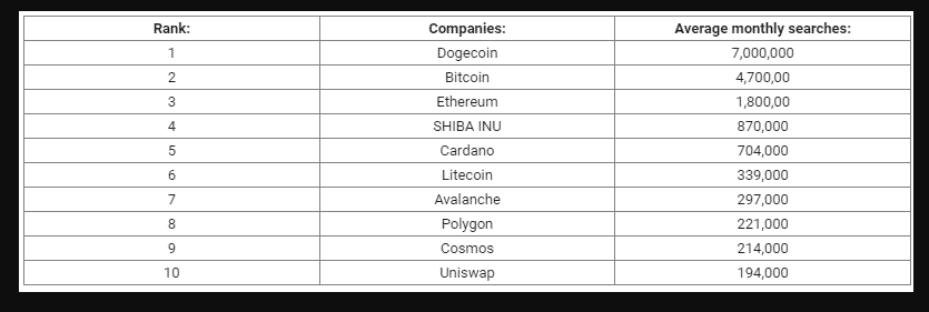 Dogecoin je tento rok približne dvojnásobne viac vyhľadávaný na Google ako Bitcoin. Na 3. mieste skončila kryptomena Ethereum a hneď za ňou je ďalší psí coin Shiba Inu. Tento fenomén psích coinov ovládol prakticky celý internet. Nedávno sme informovali, že Shiba Inu je ešte viac ziskovejšia kryptomena ako Bitcoin. Psie kryptomeny nevalcovali rebríček iba ziskov na burze, ale aj Google trends.
