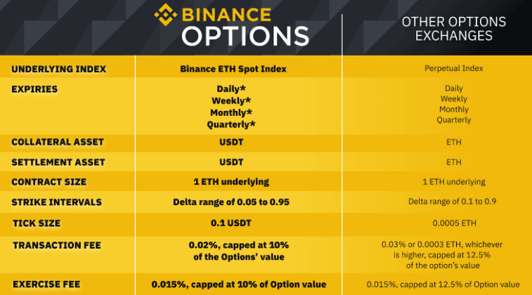 Platforma Binance Options je vďaka svojmu dizajnu ideálnym miestom pre investorov, ktorí chcú obchodovať s opciami. Cieľom platformy je uľahčiť vstup do obchodov pre retailových obchodníkov a taktiež aj inštitucionálnych investorov, a to nízkymi transakčnými poplatkami pre obchodovanie s opciami.