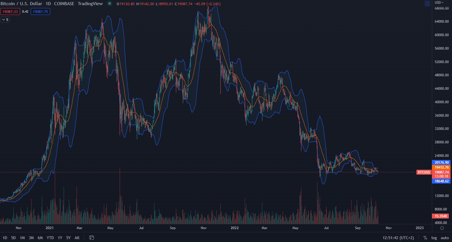 Odborníci zdôrazňujú, že úzke pásmo Bollinger bands je znakom toho, že Bitcoin čaká vysoká volatilita v blízkej budúcnosti. Pravdepodobne pôjde o ďalší pokles ceny. Globálny kryptomenový trh sa obchoduje za podmienok vysokej volatility v dôsledku zvýšenej korelácie s tradičným trhom.
