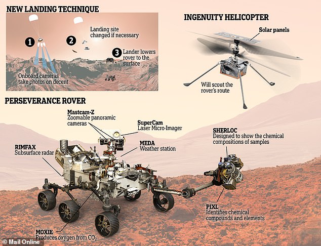 Táto misia má aj jedno zaujímavé prvenstvo, ktorým je malá helikoptéra Ingenuity. Tá bude roveru pomáhať s prieskumom terénu a umožní vedcom väčšiu voľnosť. Jej váha je 1,8 kg a výška takmer pol metra. Priemer dvoch rotorov je 1,2 m. Ingenuity bude získavať elektrickú energiu zo solárnych panelov a lietať vydrží 90 sekúnd.