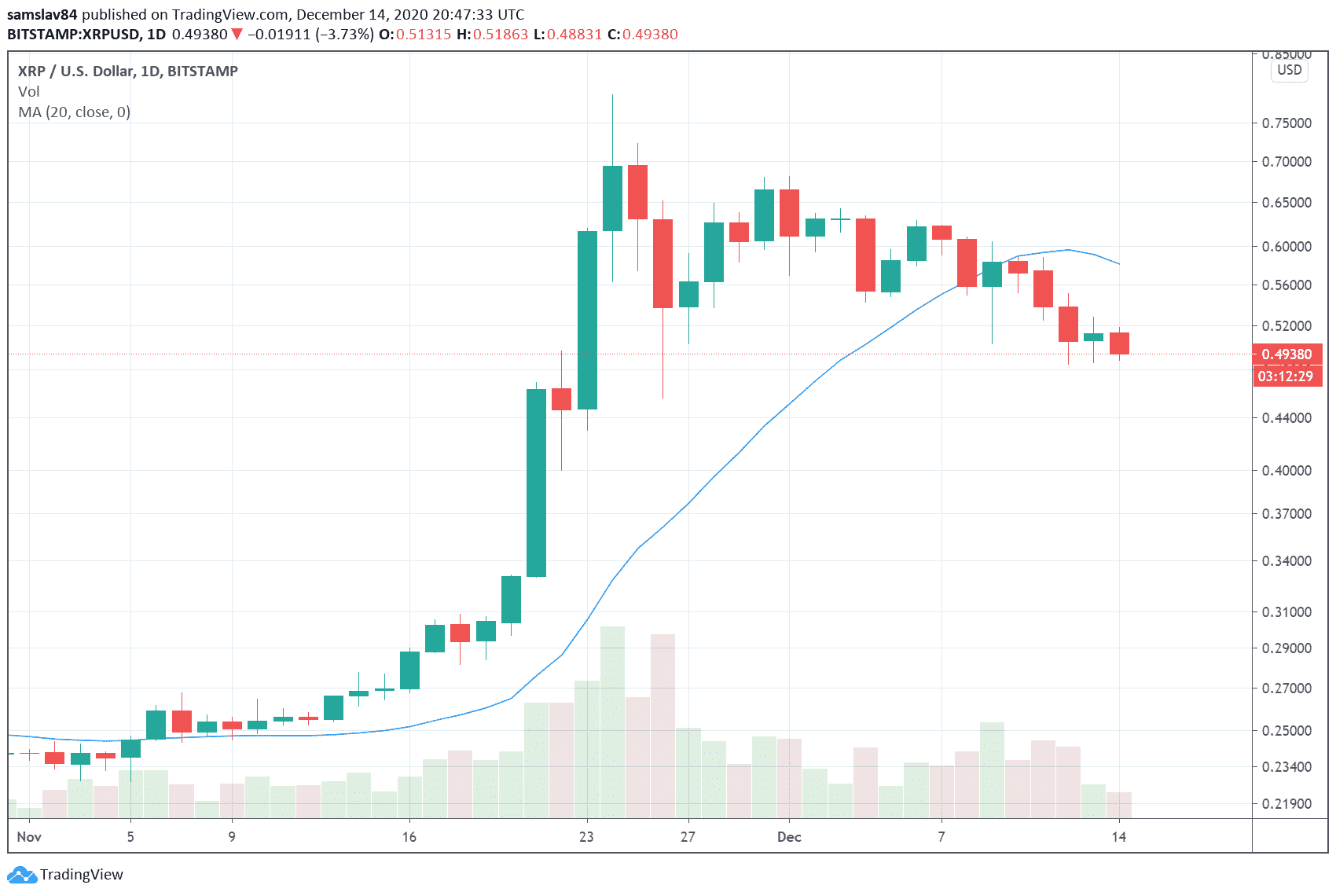 Väčšina obchodníkov držala XRP práve kvôli tomuto airdropu a v posledných troch dňoch teraz XRP panicky predávajú. Cena tokenu iba za posledné tri dniklesla o viac než 15% a dokonca podliezla hladinu 50 centov.