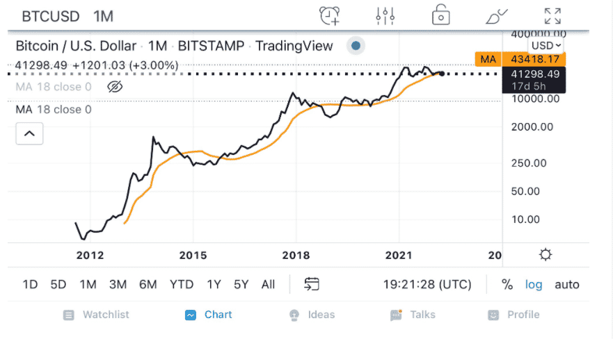 Bitcoin cenový graf. Zdroj: PeterLBrandt/Twitter