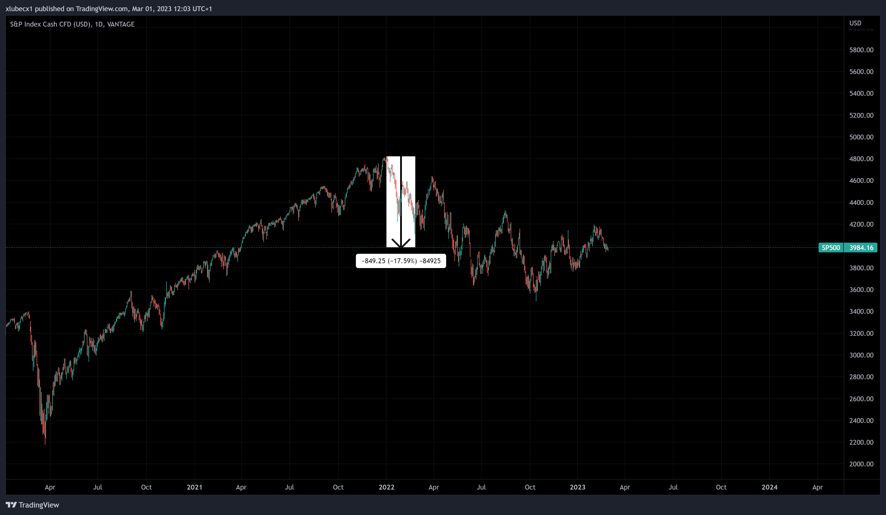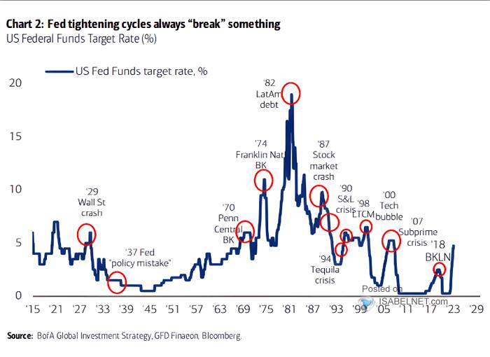 Firmy a banky si v dôsledku vysokých úrokových sadzieb požičiavajú menej, čo spôsobuje zastavenie rastu ekonomiky a prejavuje sa aj na poklesoch na globálnych trhoch. Najväčší americký index S&P500, je od maxima nižšie o 17 % a posledné mesiace sa nachádza v stagnácii.