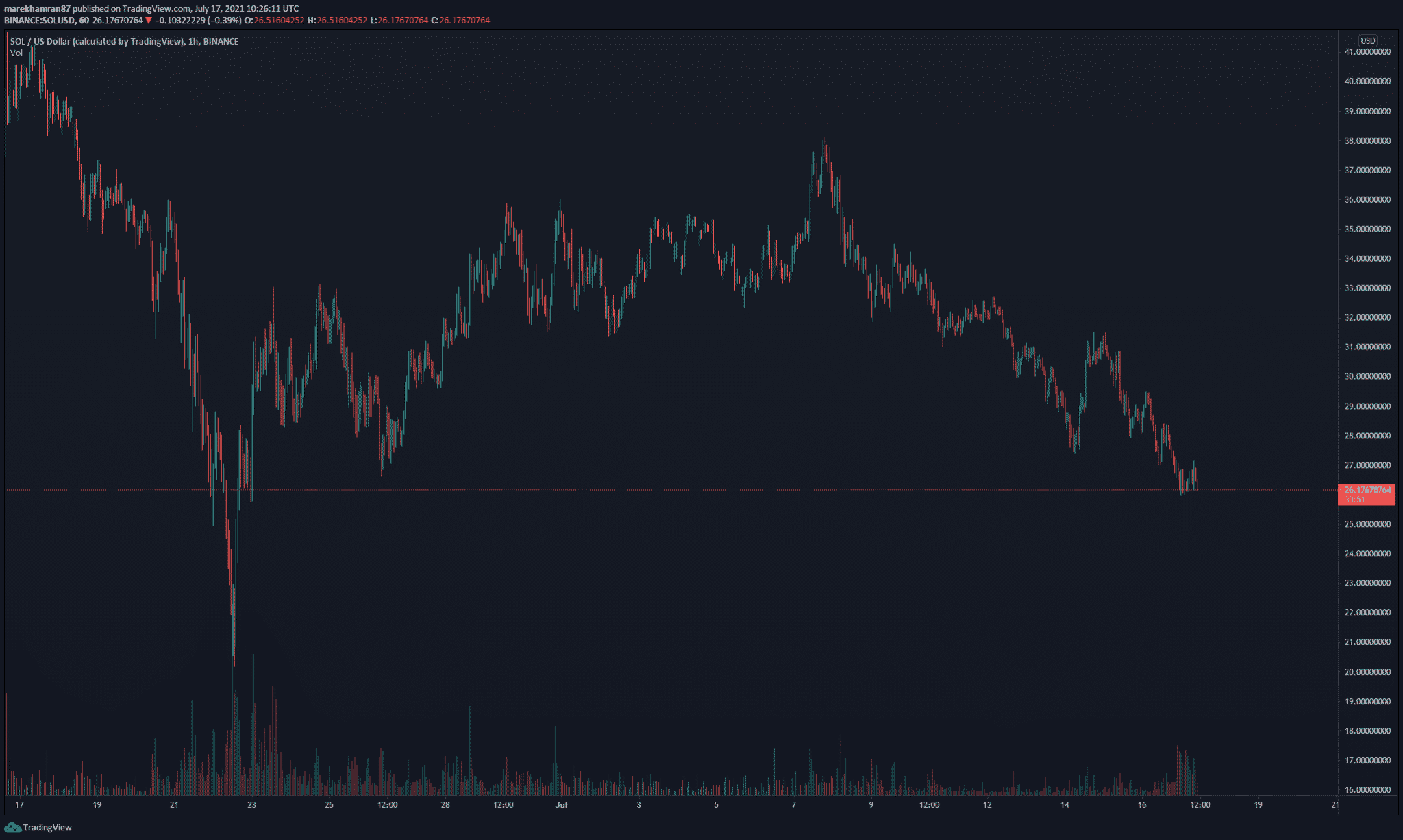 SOL/USD hodinový graf. Zdroj: TradingView