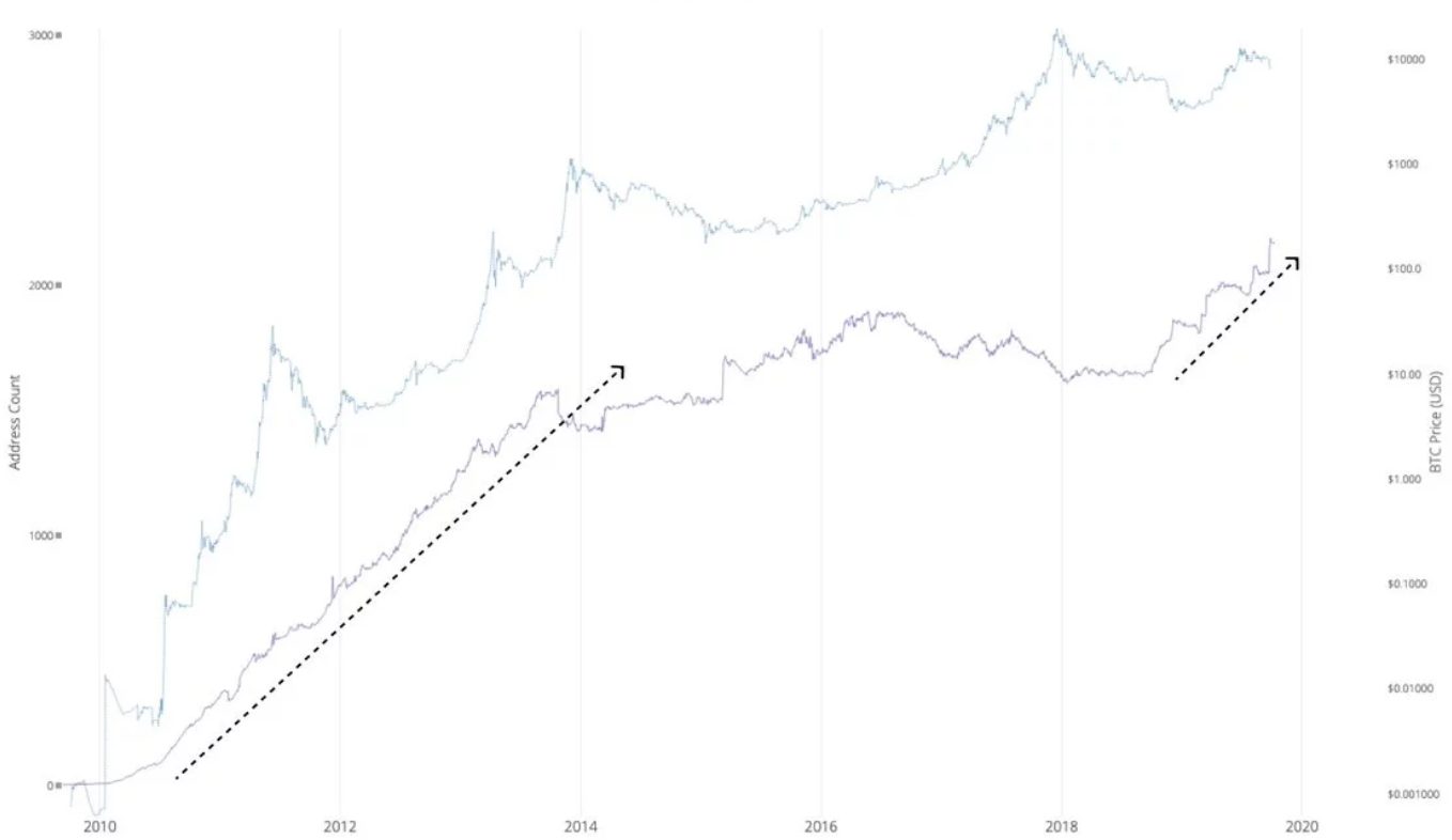Počet veľkých peňaženiek rastie prvýkrát od roku 2013, kedy tesne pred pádom burzy Mt Gox začalo dlhé obdobie stagnácie. To naznačuje, že Bitcoiny sa zase raz začínajú prerozdeľovať medzi širšie spektrum ľudí. Aj počet peňaženiek, ktoré obsahujú BTC v hodnote aspoň 100 000 $, rapídne stúpa.