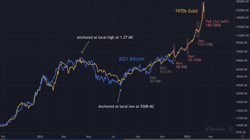 Nasledujúcich pár týždňov bude pre BTC veľmi dôležitých, pretože vytvára, resp. narúša niektoré významné korelácie. Kuriózne až desivé podobnosti medzi BTC/USD v rokoch 2020 – 21 a XAU/USD pred päťdesiatimi rokmi pretrvali napriek niektorým anomáliám volatility v cenovej akcii Bitcoinu.