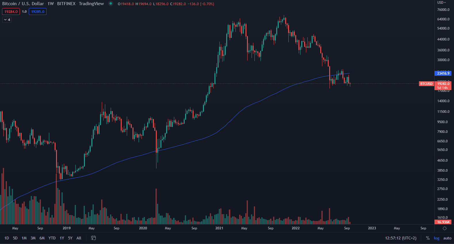 Analytik sa odvolal na makroekonomické faktory a na ukazovateľ, ktorý signalizuje pre Bitcoin ten najhorší scenár. Merten svoju predpoveď zdieľal na svoj youtube kanáli s vyše 500 000 odberateľmi. Poukázal na 200-týždňový kĺzavý priemer (modrá krivka MA200), ktorý sa zmenil zo supportu na rezistenciu. V minulosti vždy Bitcoin rešpektoval tento kĺzavý priemer ako support a prepad ceny pod tento priemer bol stále iba krátkodobý.