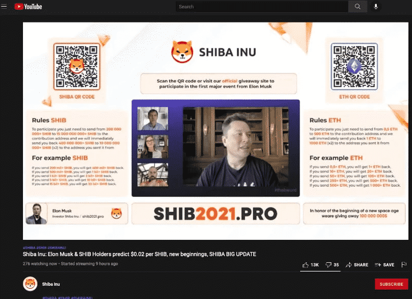 Scammeri si vždy nájdu cestu, ako využiť častokrát naivných a neskúsených nováčikov, ktorí vstupujú do sveta kryptomien. Tentokrát sa zamerali na YouTube. Podľa nových štúdií len za mesiac október dokázali vygenerovať zisk 9 miliónov dolárov. Ako je to možné? Je to veľmi jednoduché. Spoločnosť Tenable ukázala, ako scammeri využívajú živé prenosy na YouTube. Veľmi kvalitne vytvorené pozadie, v ktorom sa striedajú vplyvné osobnosti zo sveta kryptomien, ako napríklad Elon Musk či zástupcovia projektov ETH, DOGE, ADA, XRP či SHIB. Ako získavali zisk od ľudí? Propagovali falošné dary, ktoré zahŕňali spomenuté kryptomeny.